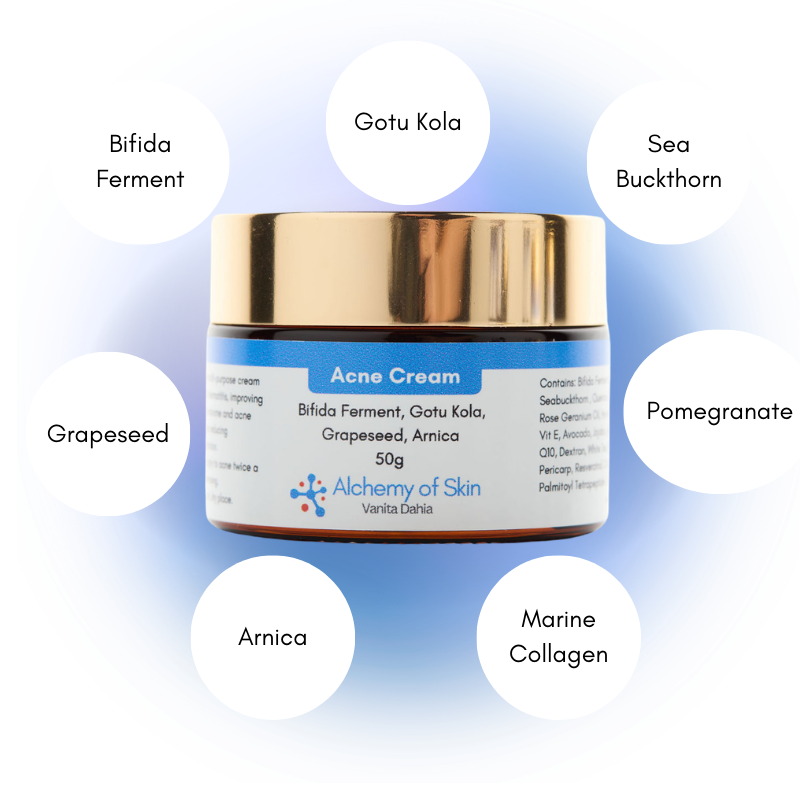 An effective multi-purpose cream for acne and dermatitis, improving the skin’s microbiome and acne symptoms and reducing hyperpigmentation.