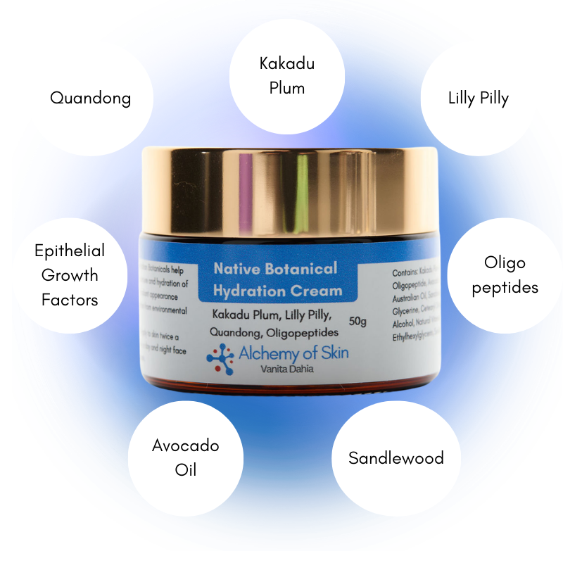 Natural Australian Botanicals help replenish moisture and hydration of the skin for radiant appearance and protection from environmental damage.